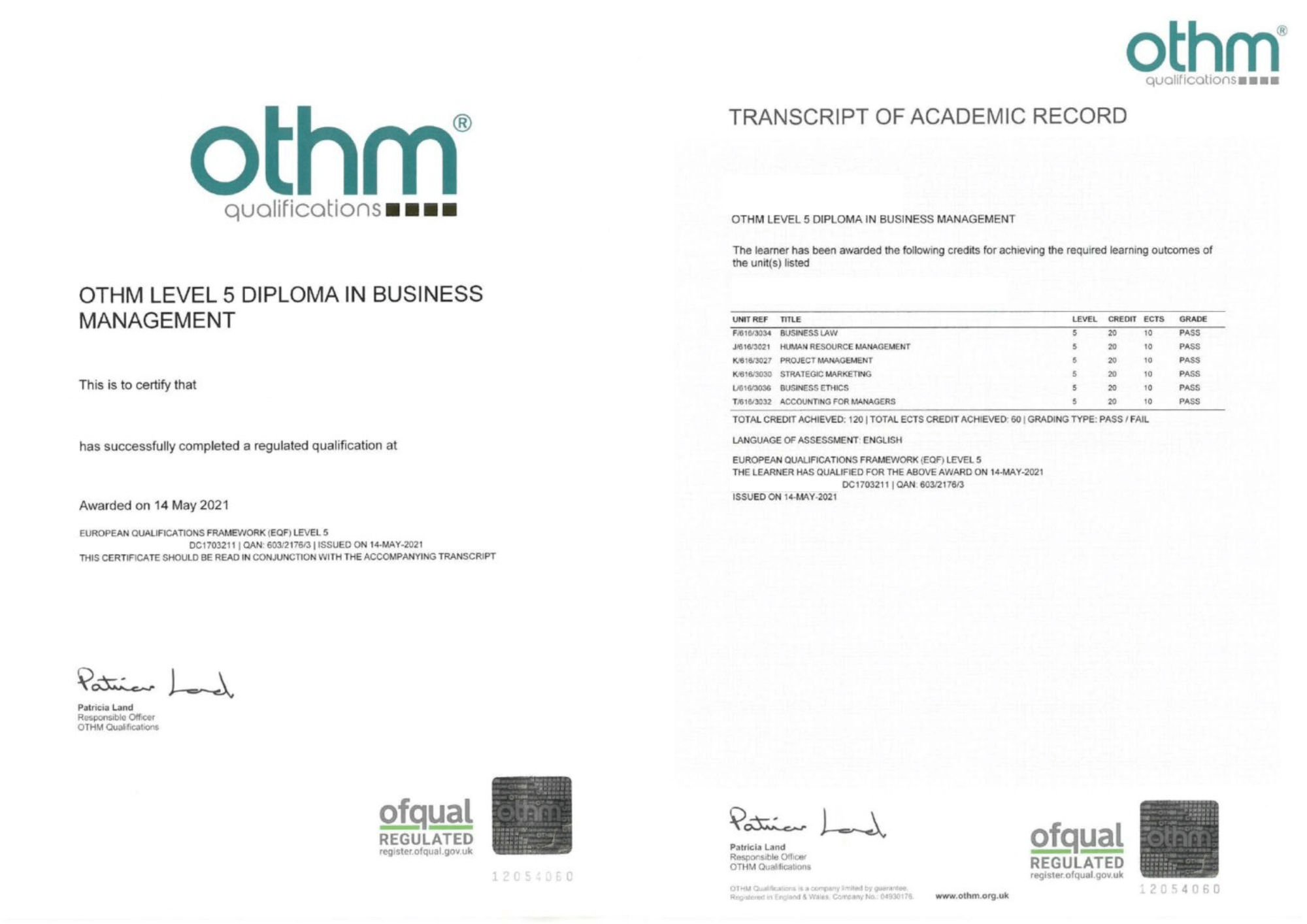 | Awarding Body | OTHM |