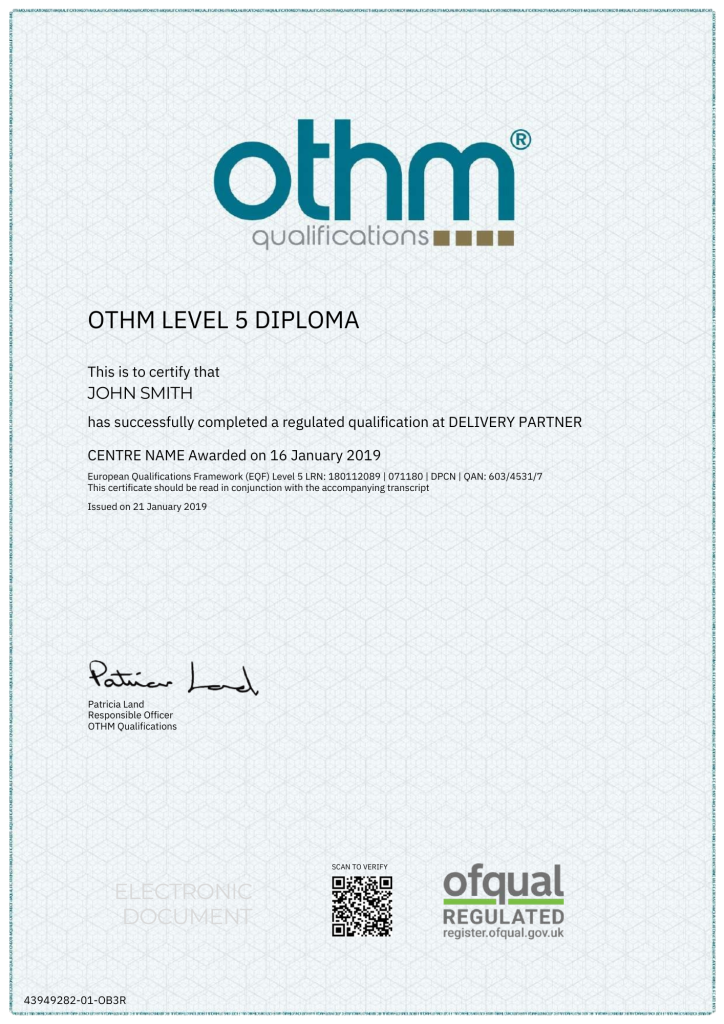 | Qualification | OTHM |
