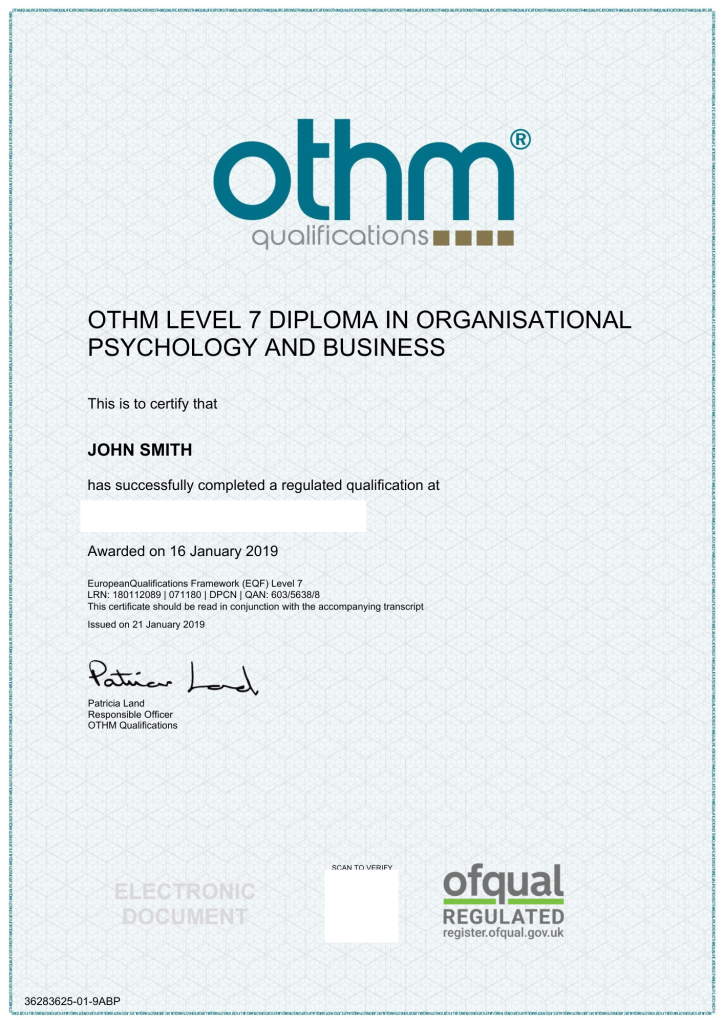 The 06 e-ProCerts that learners can obtain during the Level 7 SwissUK® Diploma in Psychology program (note: this is optional):